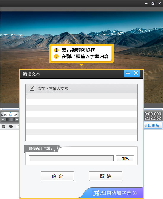 如果你自定义添加其它字幕,同样可以在“字幕特效”面板中完成。只需在视频预览框上双击,即可在弹出的输入框中输入文字,并自由调整字幕的位置、时长、特效等参数。