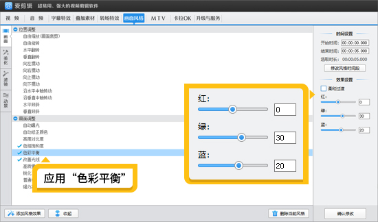 接下来,应用“色彩平衡”功能,通过增加绿色和蓝色来调整视频色彩。绿色是紫色的互补色,增加绿色可以有效中和紫色;同时,增加蓝色可以减少黄色,使画面看起来更加清冷通透。经过这些调整,视频的颜色偏紫问题应该可以得到有效解决。